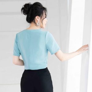 Áo kiểu nữ TosonFashion Xanh cổ tròn